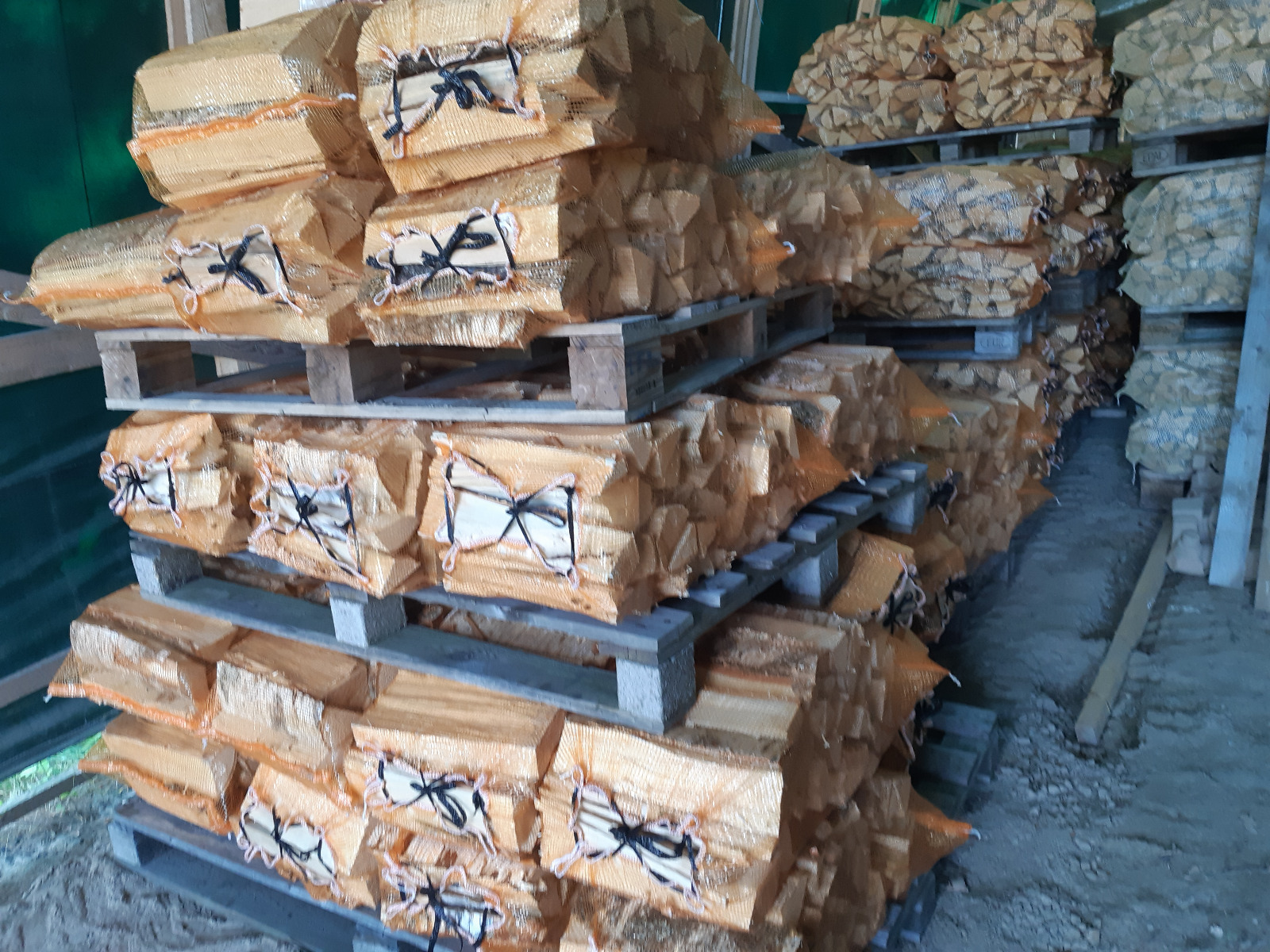 Puhdasta koivua pakattuna 60 litran verkkosäkkeihin.