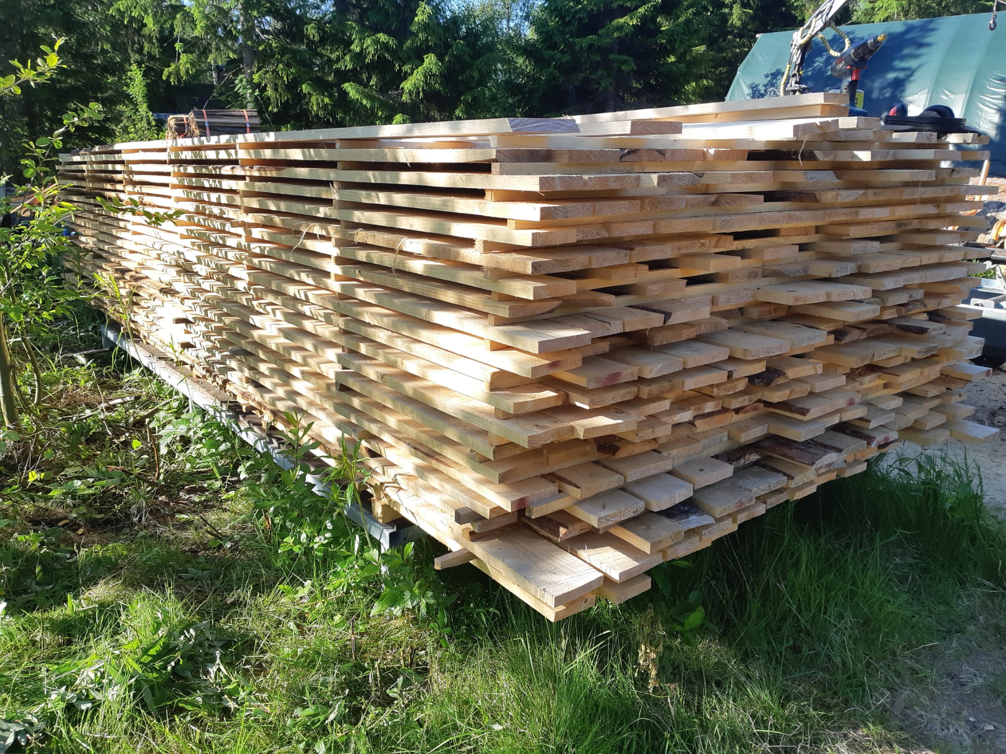 Sahattu keväällä-25, Hitaan alkukuivauksen jälkeen lankut kuivataan kuivurissa tarpeen mukaan.